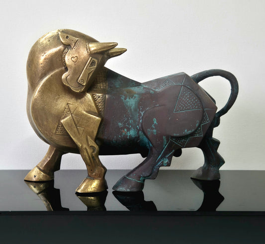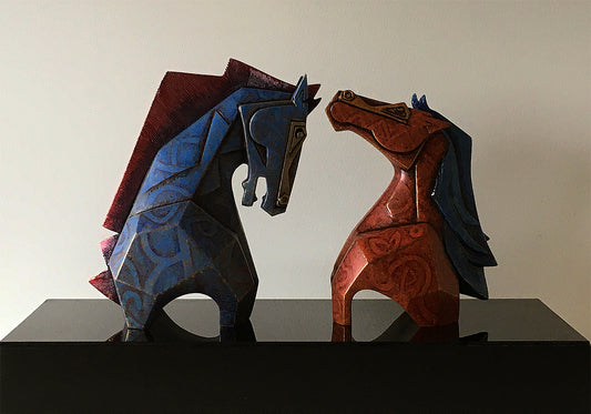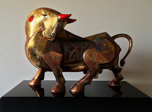 In the realm of modern art, the early 20th century saw the rise of Cubism, an avant-garde movement that still inspires artists globally. Drawn to this unique style, Dinkar Jadhav started crafting his favorite subjects, horses and bulls, into cubist forms. He has a keen eye for the interplay of light in nature, which led him to develop a color-blocking technique. This method involves dividing the background into contrasting colors or shades and then layering geometric shapes to depict his subjects in motion. Despite experimenting with various mediums, acrylics remain his preferred choice.