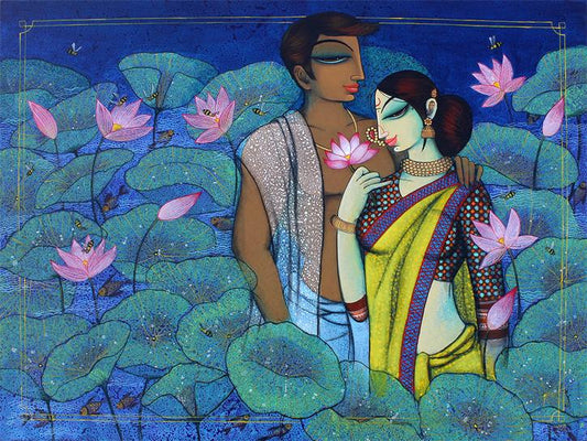 ‘Serene,’ ‘meditative,’ ‘peaceful,’ are the words, that these paintings by Jiban Biswas, evoke in the...