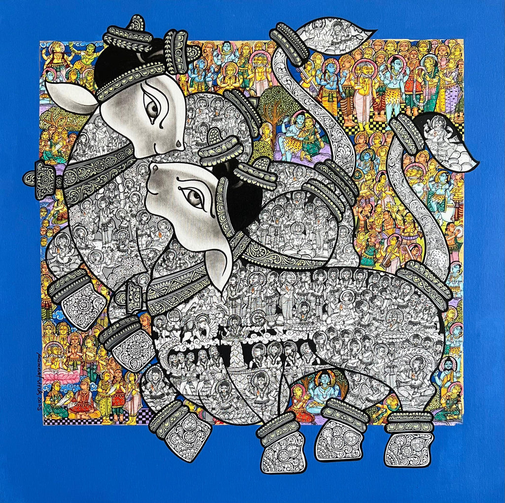 For more than a decade, Vivek has researched and drawn the sacred bull and Shiva. Vivek’s popularity with his patrons and art connoisseurs is due to his attention to detail and his ability to use vibrant colors in a lyrical harmony. He has been a part of over 20 group shows and solo exhibitions. Jehangir Art Gallery, Sir J.J. Applied Art Gallery, Mumbai, and the Triveni Kala Sangam Art Gallery, New Delhi, are a few galleries where his solo shows have been held. He has also been a part of international group shows such as Colors Screen Art Show, Dubai, and a Group Show, Singapore.