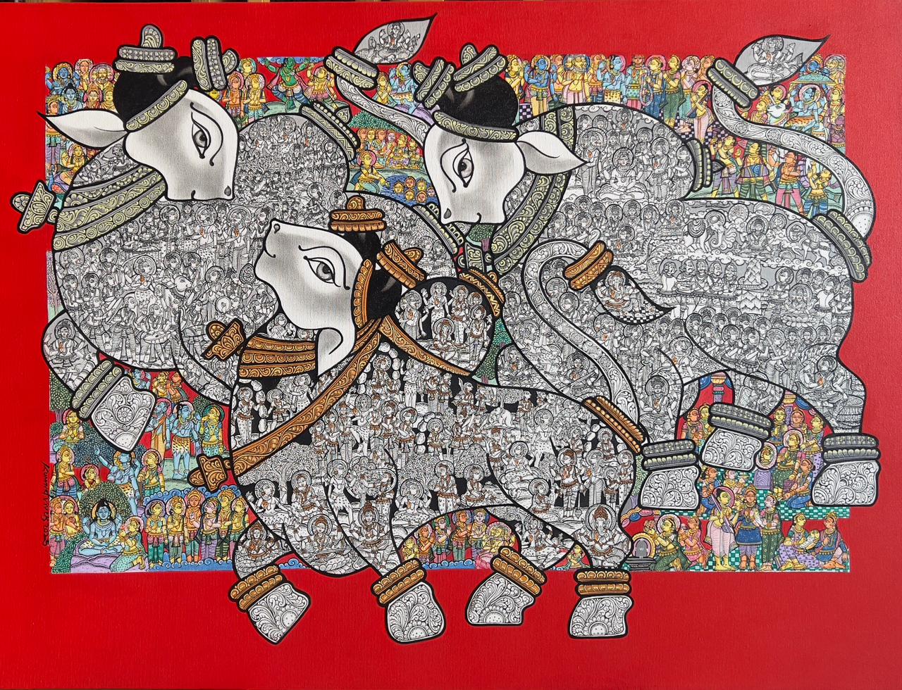 For more than a decade, Vivek has researched and drawn the sacred bull and Shiva. Vivek’s popularity with his patrons and art connoisseurs is due to his attention to detail and his ability to use vibrant colors in a lyrical harmony. He has been a part of over 20 group shows and solo exhibitions. Jehangir Art Gallery, Sir J.J. Applied Art Gallery, Mumbai, and the Triveni Kala Sangam Art Gallery, New Delhi, are a few galleries where his solo shows have been held. He has also been a part of international group shows such as Colors Screen Art Show, Dubai, and a Group Show, Singapore.