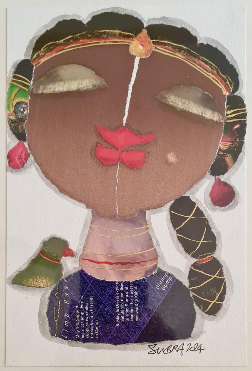Subramanian’s work is mostly in mixed media and his collages on canvas are inspired by the costumes that his father would wear as a theatre artist. Subramanian is ruled by his emotions and through his art he wants the audience to not only see but also feel his art. He has portrayed Krishna, Buddha, Ganesha and other mythological figures in his work. He uses various techniques, (such as calligraphy), abstract backgrounds, Indian myth and tradition to bring his collages to life.