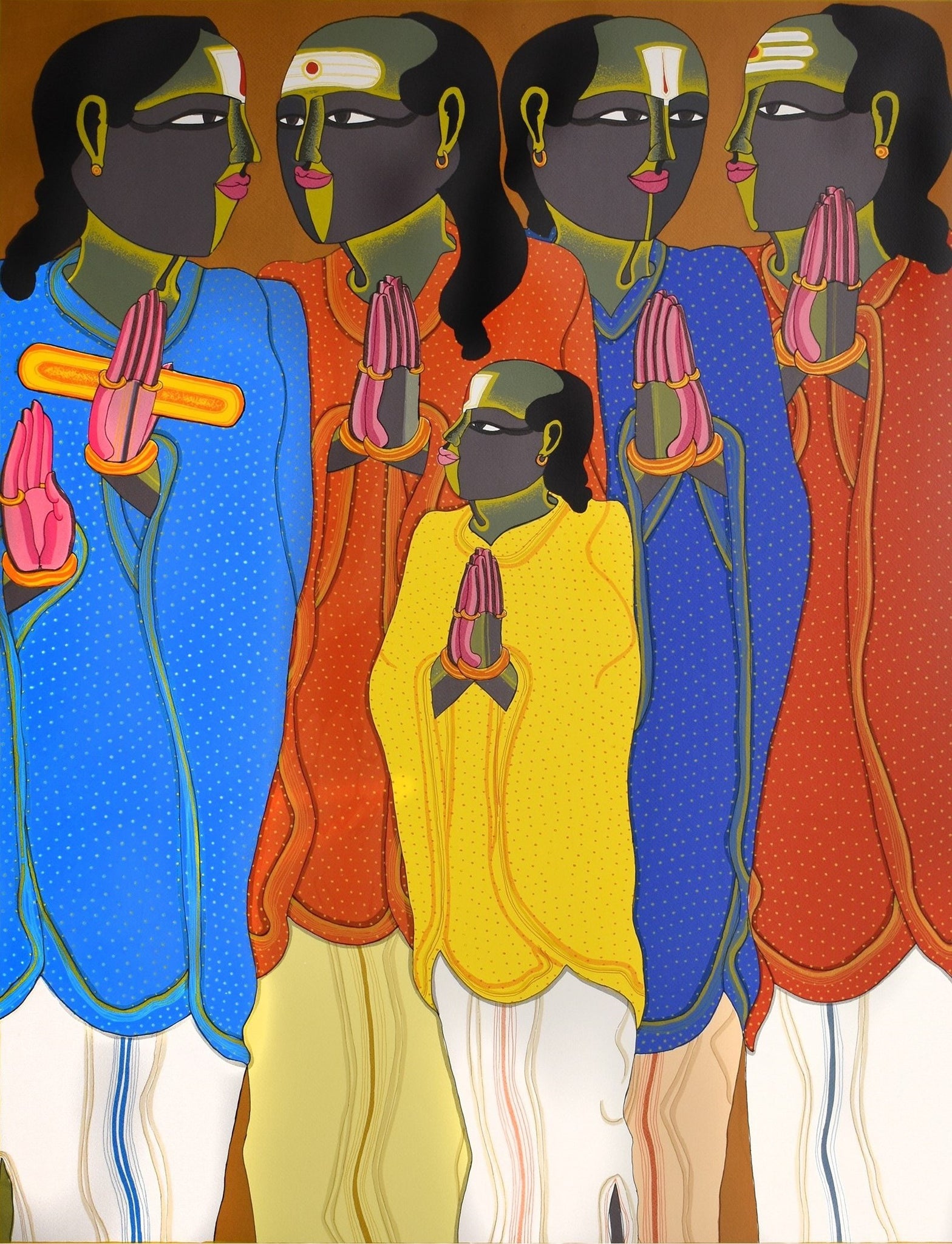 Thota Vaikuntam, was born in Burugupalli, in Karimnagar district, Telangana in 1942. He pursued his education from College of Fine Arts and Architecture, Hyderabad and later studied Painting and Printmaking, in Faculty of Fine Arts, Maharaja Sayajirao University of Baroda, where he was under the tutelage of pioneer artist, K. G. Subramanayan.