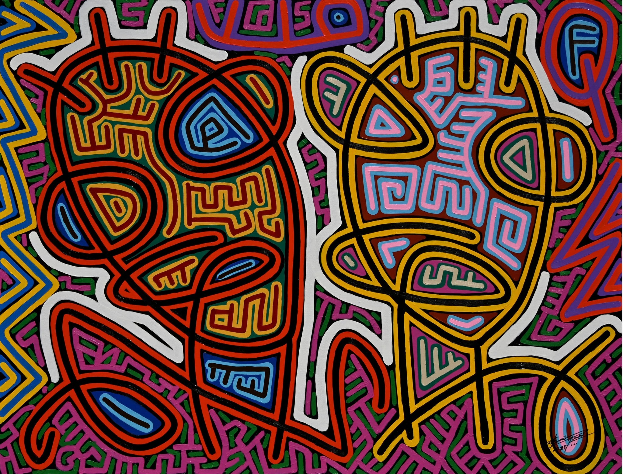 Bhuwal started working with various forms of drawings and paintings from a very young age. Though he was deeply influenced by tribal art, the artist fell in love with the modernity of abstract art. He wanted to fuse the free flowing spirit of abstract art with the purity and simplicity of tribal paintings.